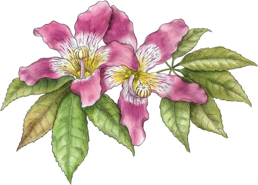 Flora nativa. Técnica de tinta y acuarelas para ilustraciones botánicas con estilo vintage. Ilustracion en vivo de un Palo Borracho.