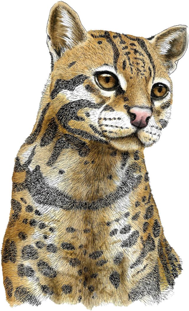 Mamíferos de Argentina. Pelajes en tinta y acuarela. Ilustración en vivo de un Ocelote.